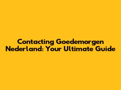 How To Contact Goedemorgen Nederland: Your Ultimate Guide